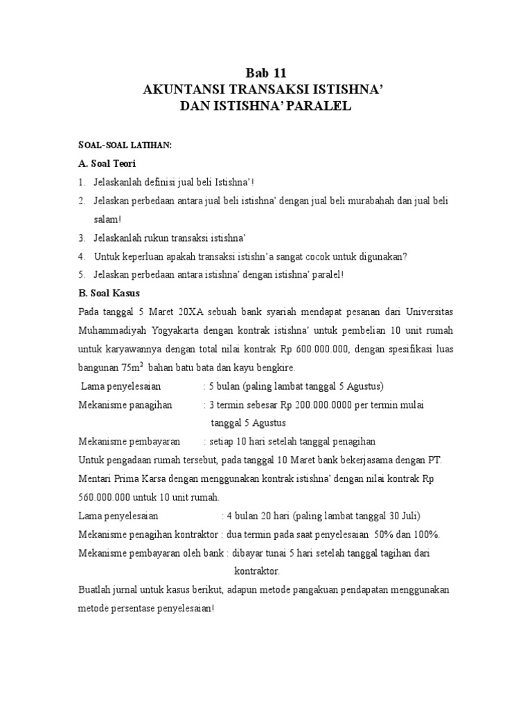Contoh Soal Istishna Paralel : Pembahasan Soal Kasus Bab 9 Buku Akuntansi Syariah Wasillah Jawabanku Id - Check spelling or type a new query.. Maybe you would like to learn more about one of these? We did not find results for: Check spelling or type a new query.