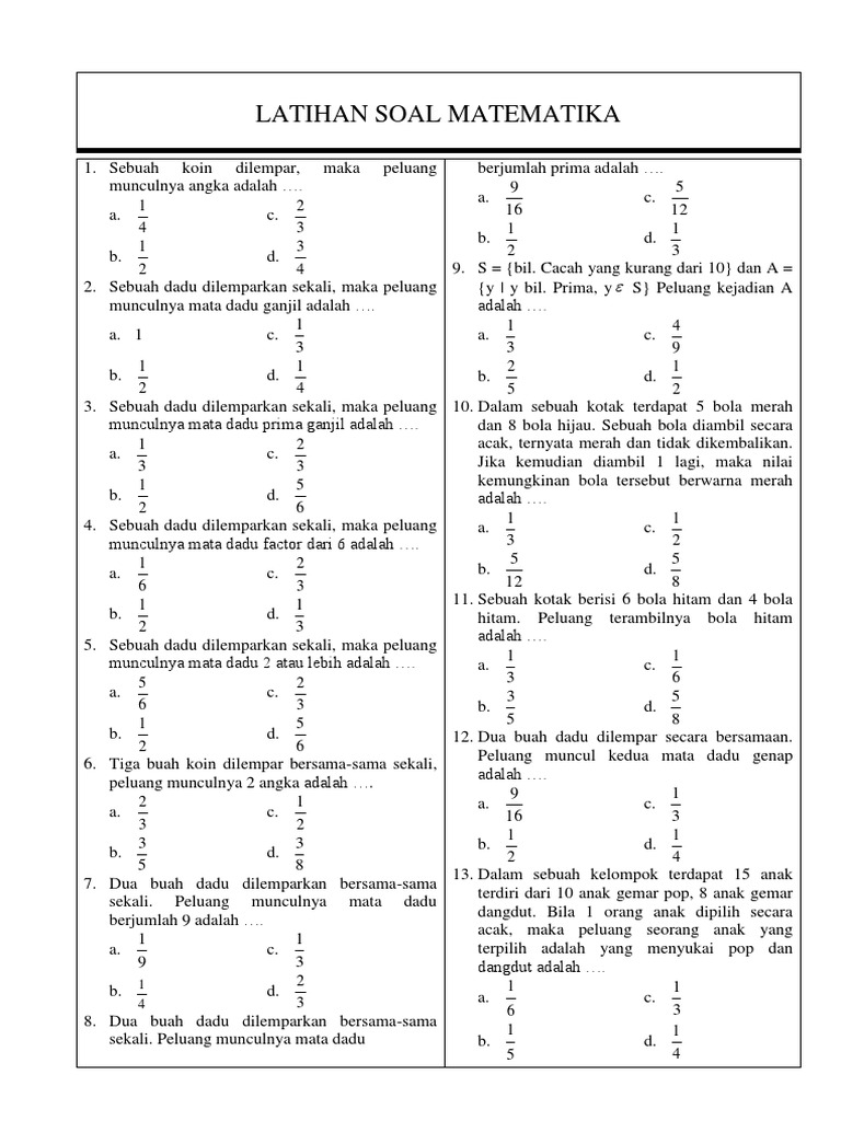 Dalam sebuah kotak terdapat 5 bola merah dan 8 bola hijau. We did not find results for: Maybe you would like to learn more about one of these? Check spelling or type a new query.